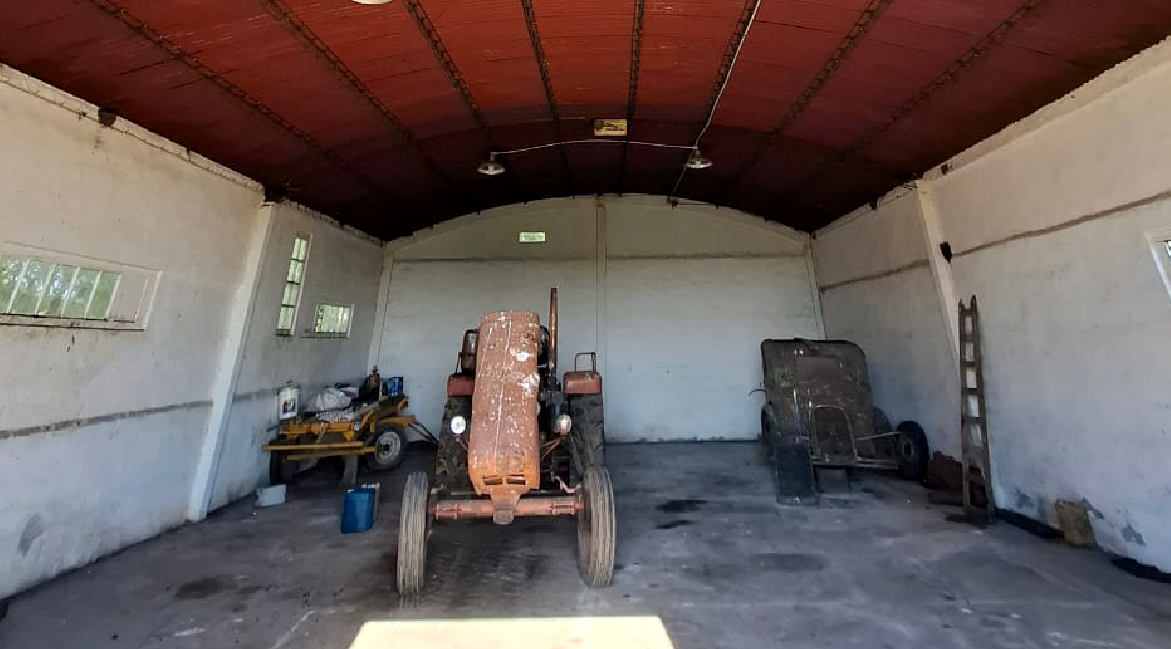 En la propiedad se encuentra un galpón de 150 m2, con piso de cemento y luz eléctrica.